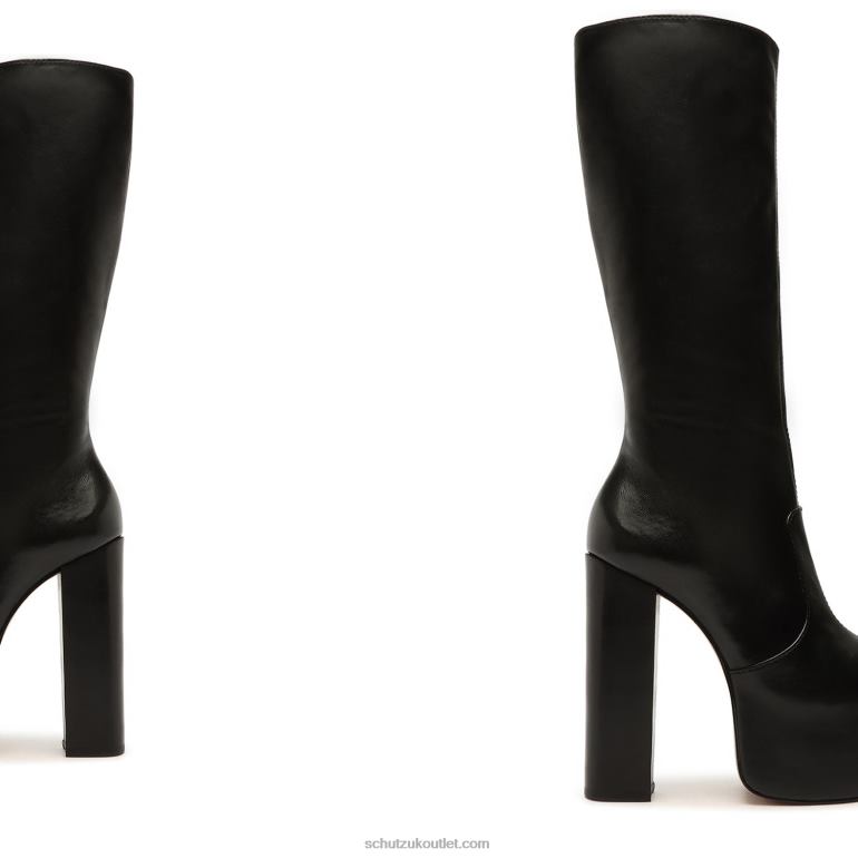 Materials: Faux Leather | Cow leather lining | Cow leather outsoleUpper format: Plain upperHeel Type: High HeelHeel Style: BlockClosure Type: Zip closureToe Style: Round toeCounter Type: ClosedPlatform Height: 60mmShaft Circumference: 13.77in | 350mmShaft Height: 13in | 330mmHeel Height: 5.5in | 142mmRubber patch at the heel.