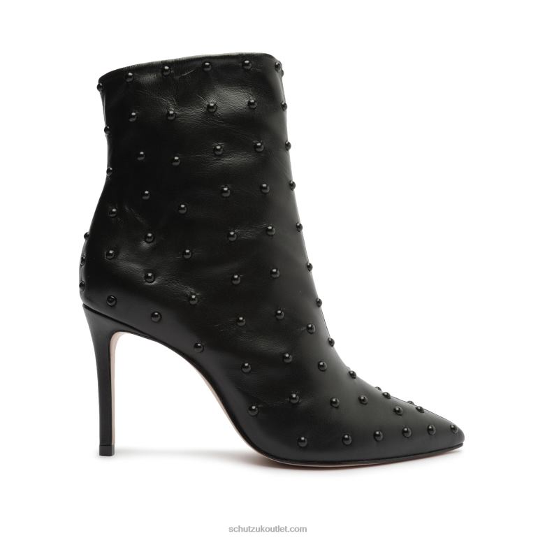 Studs add an elegant edge to the Anne Bootie. This heeled ankle bootie is crafted from leather with a pointed toe and stiletto heel.