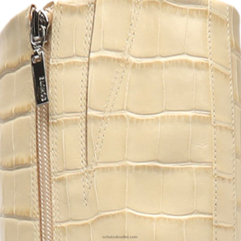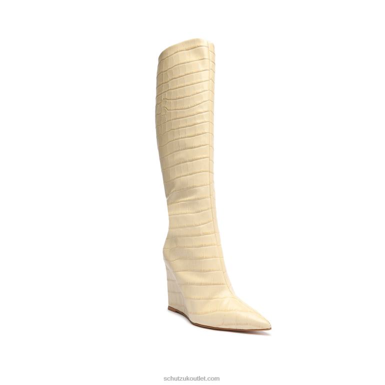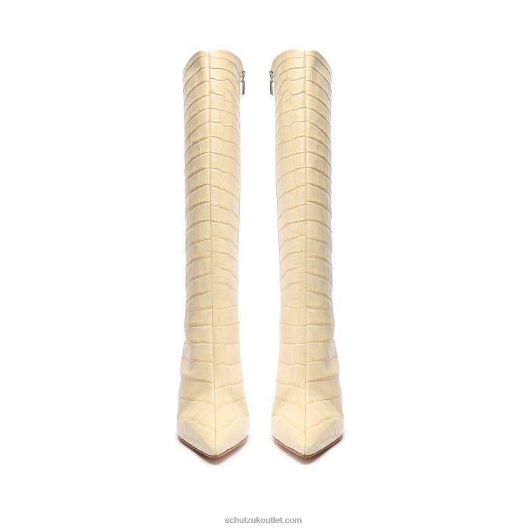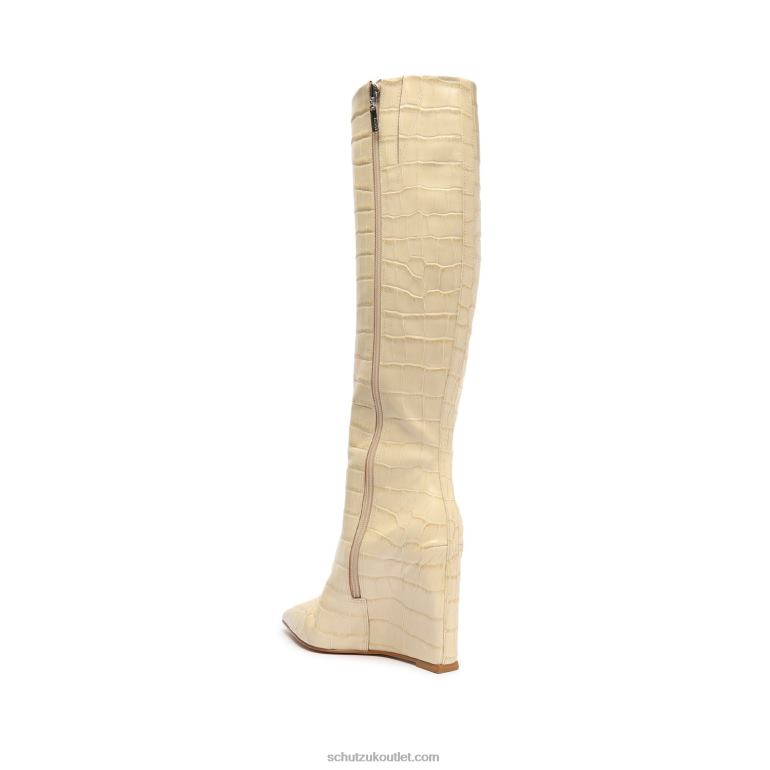 UK Schutz Asya Up Crocodile-Embossed Leather Boot Eggshell 806T8757