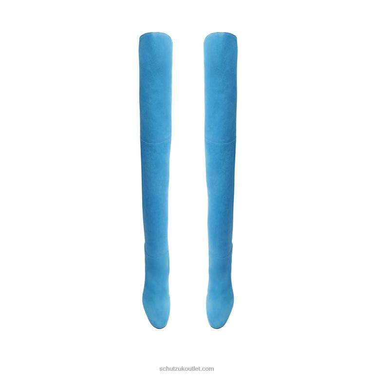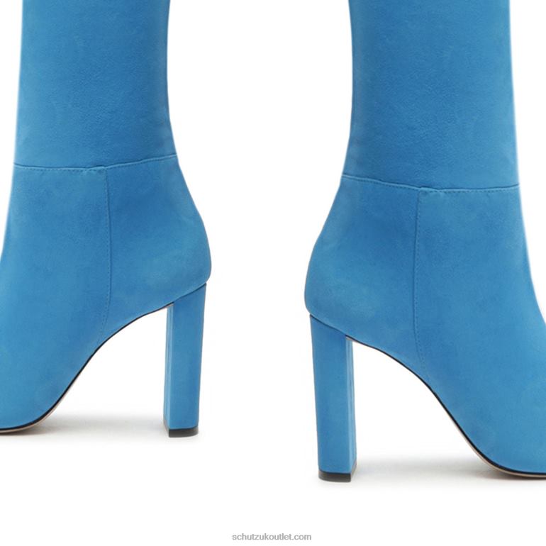 Give your outfit a pop of color with a pair of these citric blue over-the-knee boots, featuring a cozy fit on the calf and a block heel for comfort when walking down the city streets.