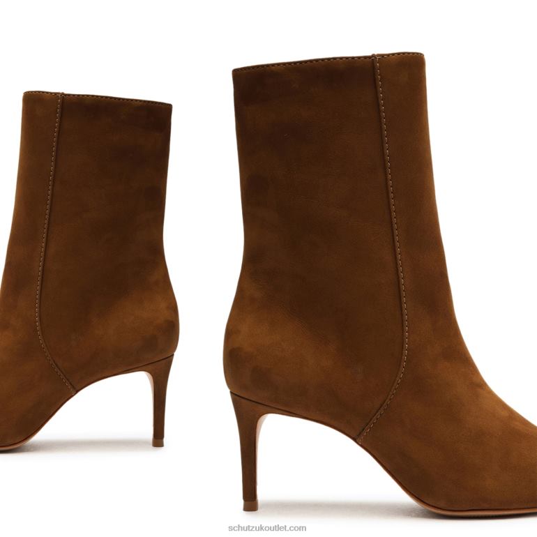Materials: Nubuck Leather | Cow leather lining | Cow leather outsoleUpper format: SkinnyRubber patch at the heel.Heel Type: Mid HeelHeel Style: BlockClosure Type: Zip closureToe Style: Pointed toeCounter Type: ClosedShaft Circumference: 8.84in | 221mmHeel Height: 2.7in | 70mm