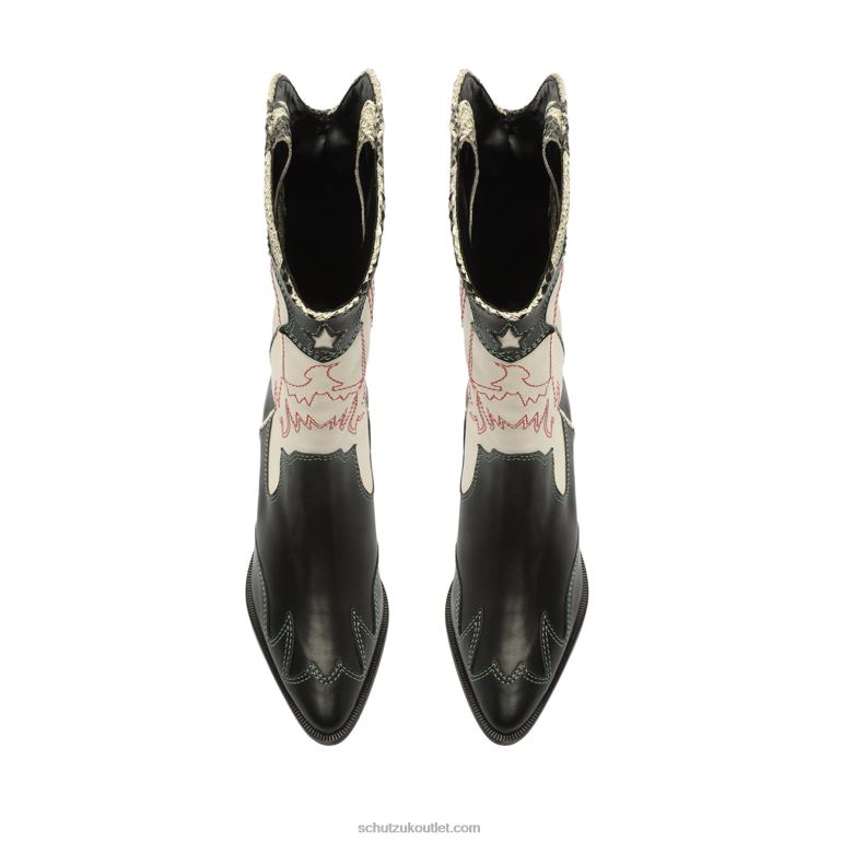 Materials: Atanado Leather & Snake-Embossed Leather | Cow leather lining | Cow leather outsoleUpper Detail: Embroidery upperHeel Type: Low heelHeel Style: BlockClosure Type: Slip-onToe Style: Pointed toeCounter Type: ClosedShaft Circumference: 13.6in | 340mmShaft Height: 9.2in | 230mmHeel Height: 1.6in | 40mm