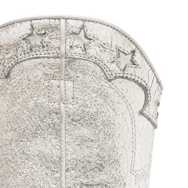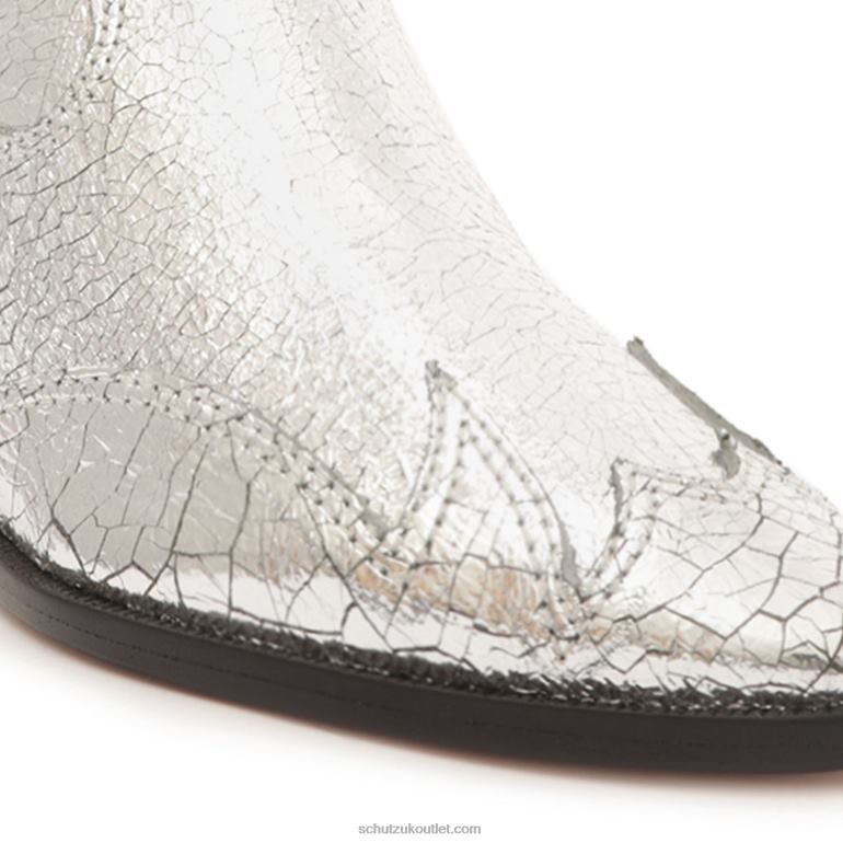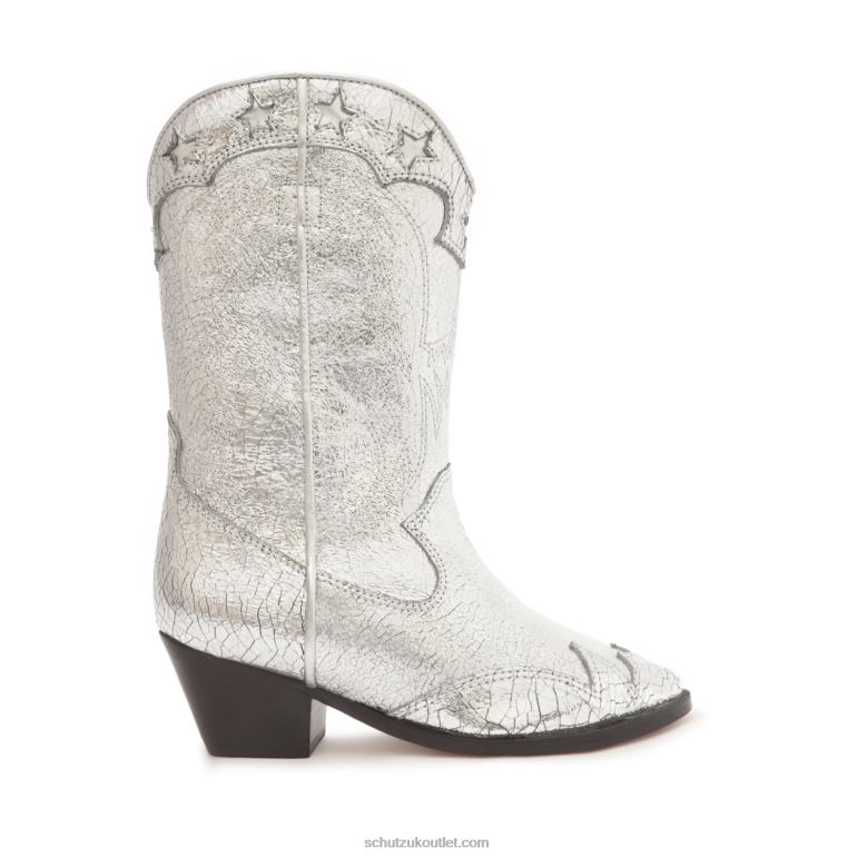 Cicera is a modern, western-inspired design that has been crafted from metallic leather with a stacked heel.