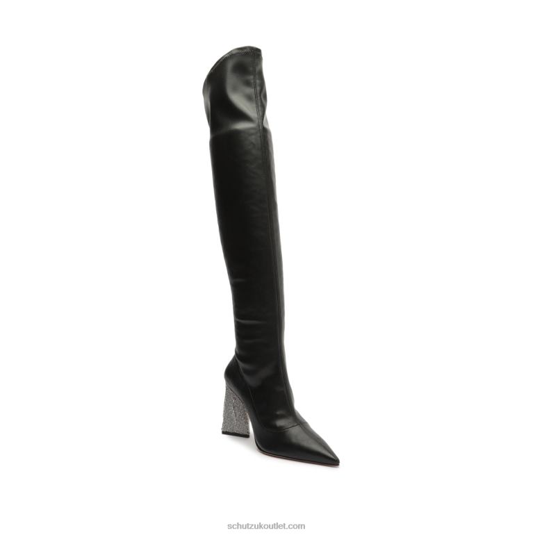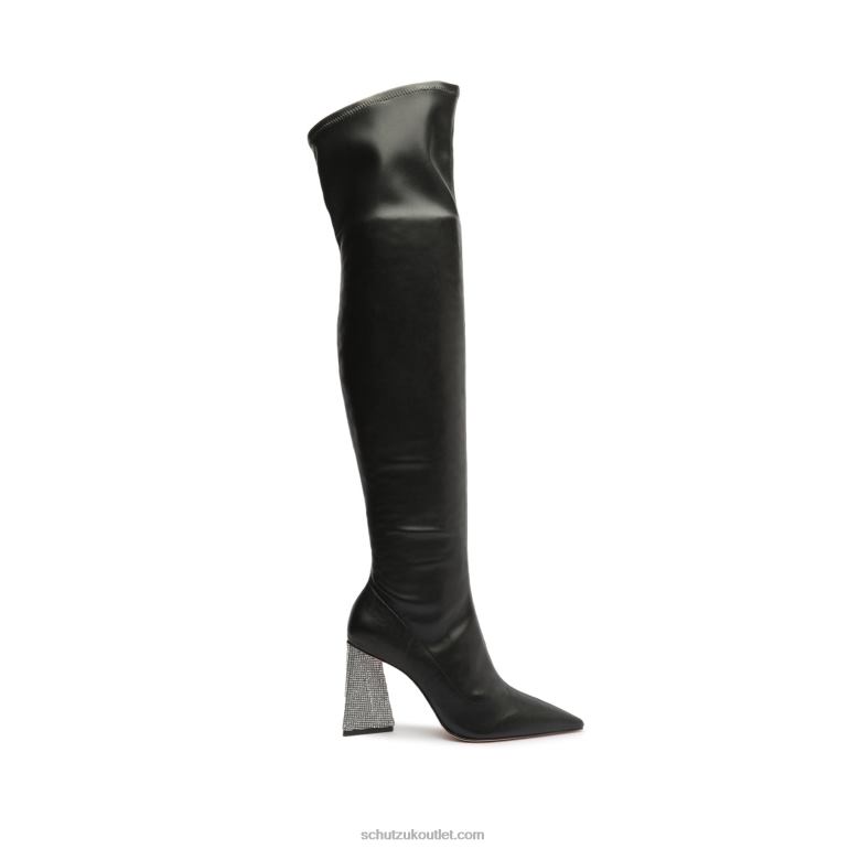 Materials: Nappa Leather | Cow leather lining | Cow leather outsoleUpper format: SkinnyRubber patch at the heel.Heel Type: High HeelHeel Style: SculpturalClosure Type: Elastic closureToe Style: Pointed toeCounter Type: ClosedShaft Circumference: 15.12in | 378mmShaft Height: 21.04in | 526mmHeel Height: 3.7in | 95mm