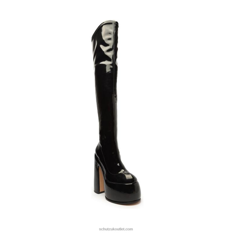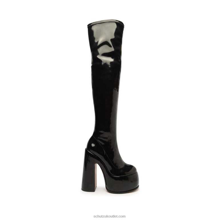 Materials: Patent Leather | Cow leather lining | Cow leather outsoleUpper format: Plain upperHeel Type: High HeelClosure Type: Slip-onToe Style: Round toeCounter Type: ClosedShaft Circumference: 14.8in | 370mmShaft Height: 21.2in | 530mmPlatform Height: 64mmHeel Height: 6.4in | 164mmRubber patch at the heel.
