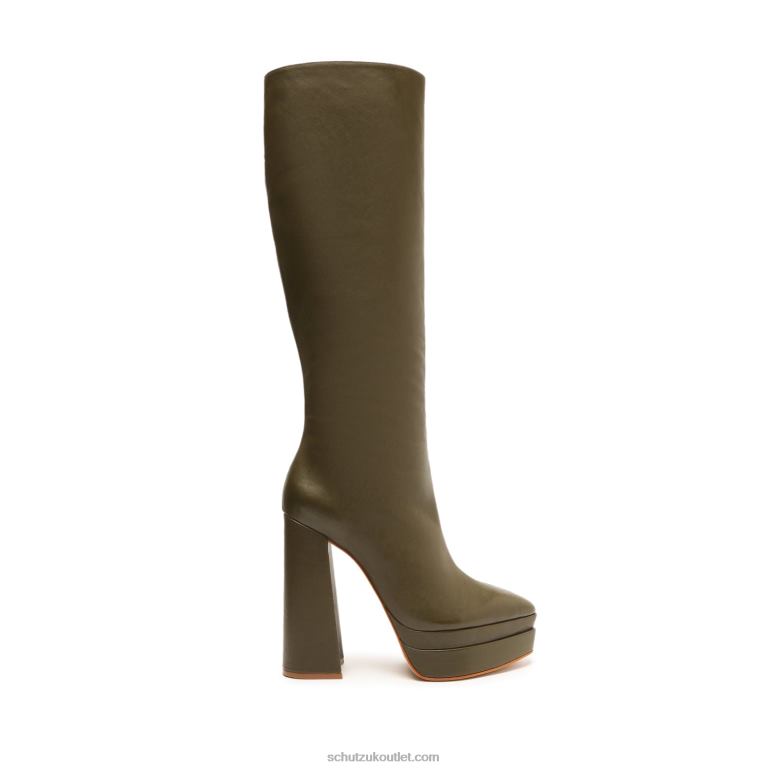 UK Schutz Elysee Up Leather Boot Military Green 806T8674