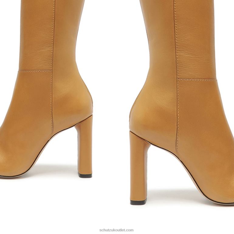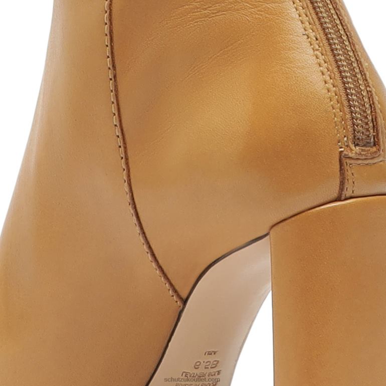 Materials: Atanado Leather | Cow leather lining | Cow leather outsoleUpper format: Plain upperHeel Type: High HeelHeel Style: BlockClosure Type: Zip closureToe Style: Round toeCounter Type: ClosedHeel Height: 3.7in | 95mmRubber patch at the heel.