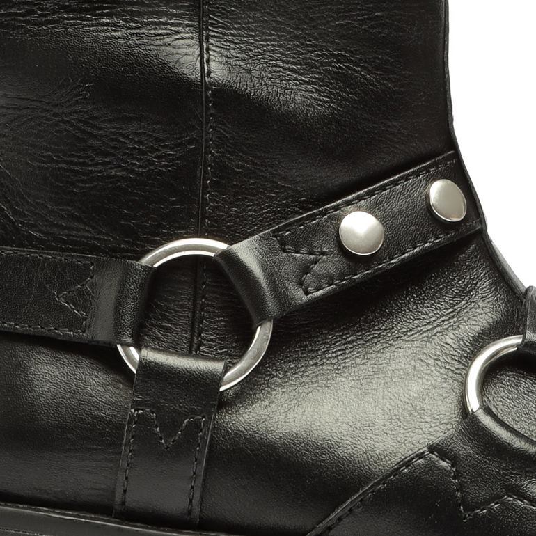 Make a tough-chic statement in the Iggy Boot, a lug-soled silhouette designed in leather with edgy metal accents.
