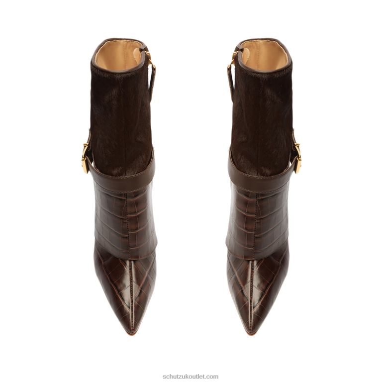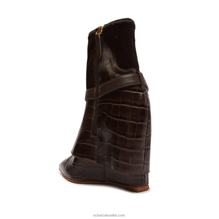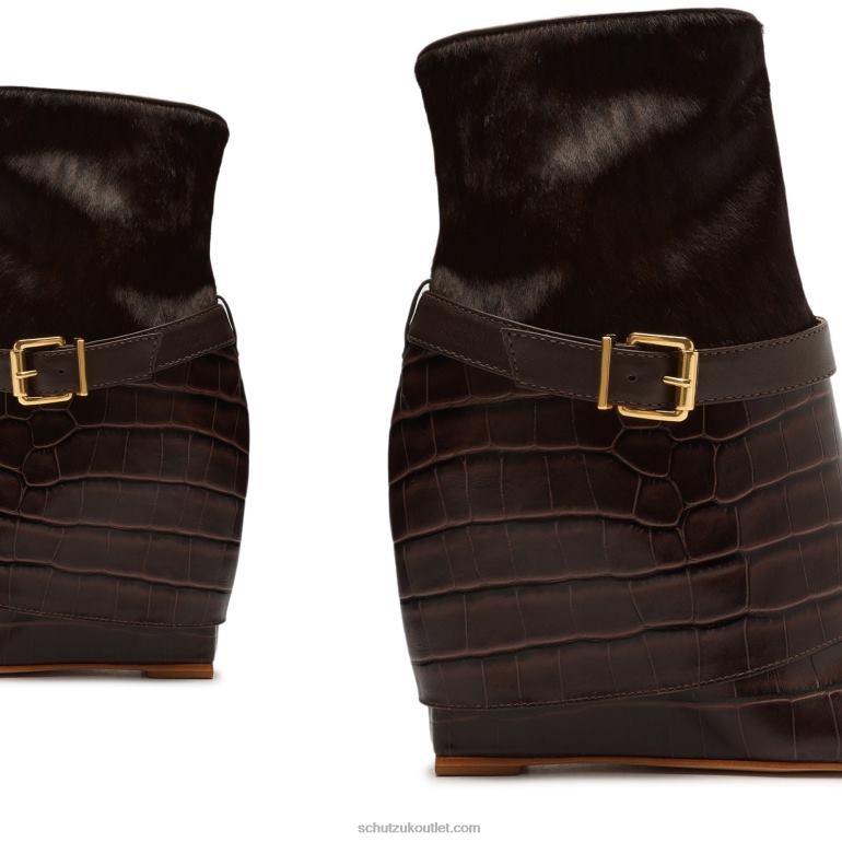 Materials: Crocodile-Embossed Leather | Cow leather lining | Cow leather outsoleHeel Type: High HeelHeel Style: WedgeClosure Type: Zip closureToe Style: Pointed toeCounter Type: ClosedShaft Circumference: 10.4in | 260mmShaft Height: 6in | 150mmHeel Height: 4.3in | 110mmRubber patch at the heel.