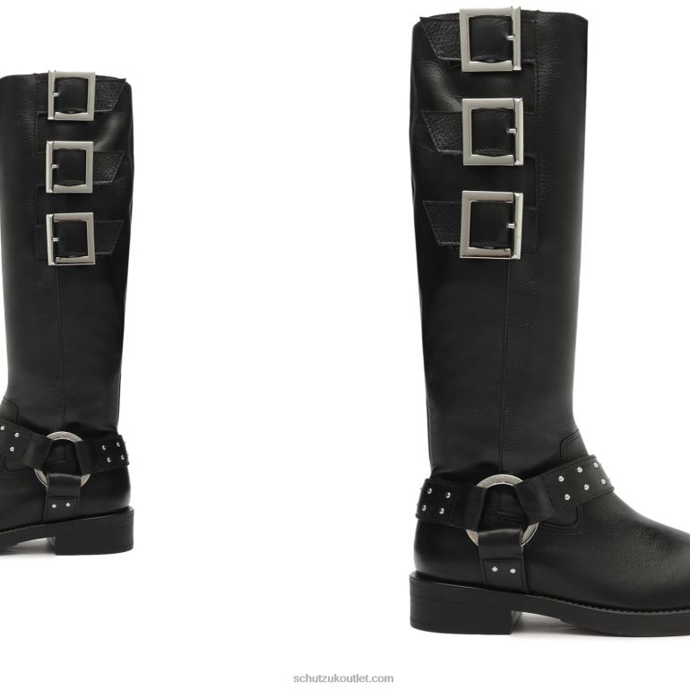 UK Schutz Luccia Buckle Graxo Leather Boot Black 806T8791