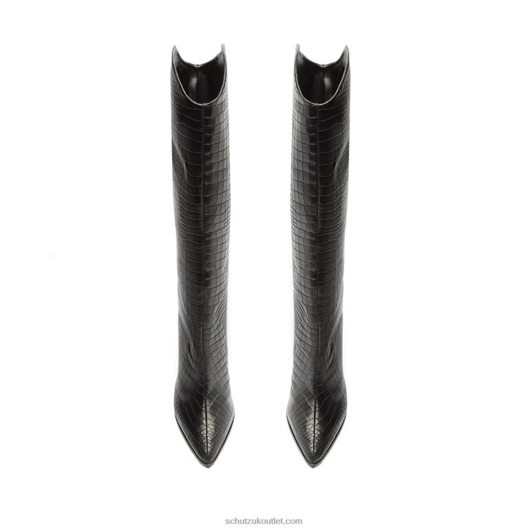 Urban chic with an equestrian spirit, the Maryana Block Boot is a knee-high silhouette crafted from croc-effect leather with a chunky stacked heel. This versatile slip-on style features a flattering almond-shaped toe and complements daytime and evening outfits with a chic sensibility. The Schutz woman will wear hers with a flowy midi dress or a pleated skirt.
