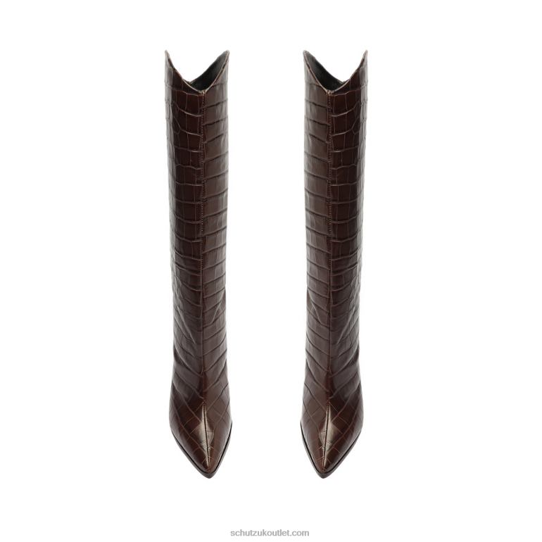 Materials: Crocodile Embossed Leather | Cow leather liningUpper format: Plain upperRubber patch at the heel.Heel Type: Mid heelHeel Style: BlockClosure Type: Zip closureToe Style: Round toeCounter Type: ClosedShaft Circumference: 14.5in | 370mmShaft Height: 13.6in | 340mmHeel Height: 3.3in | 85mm