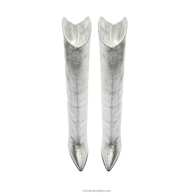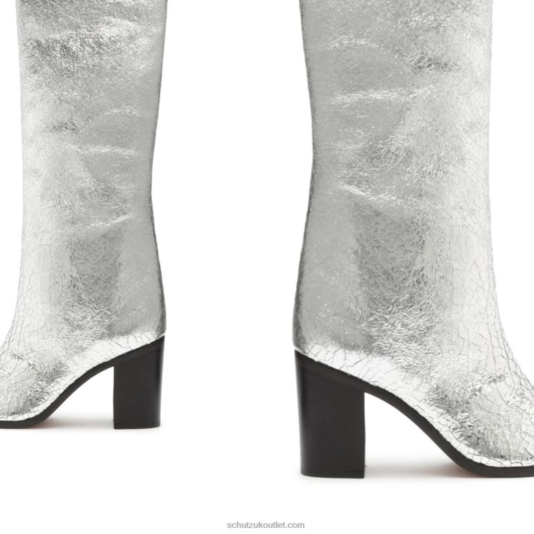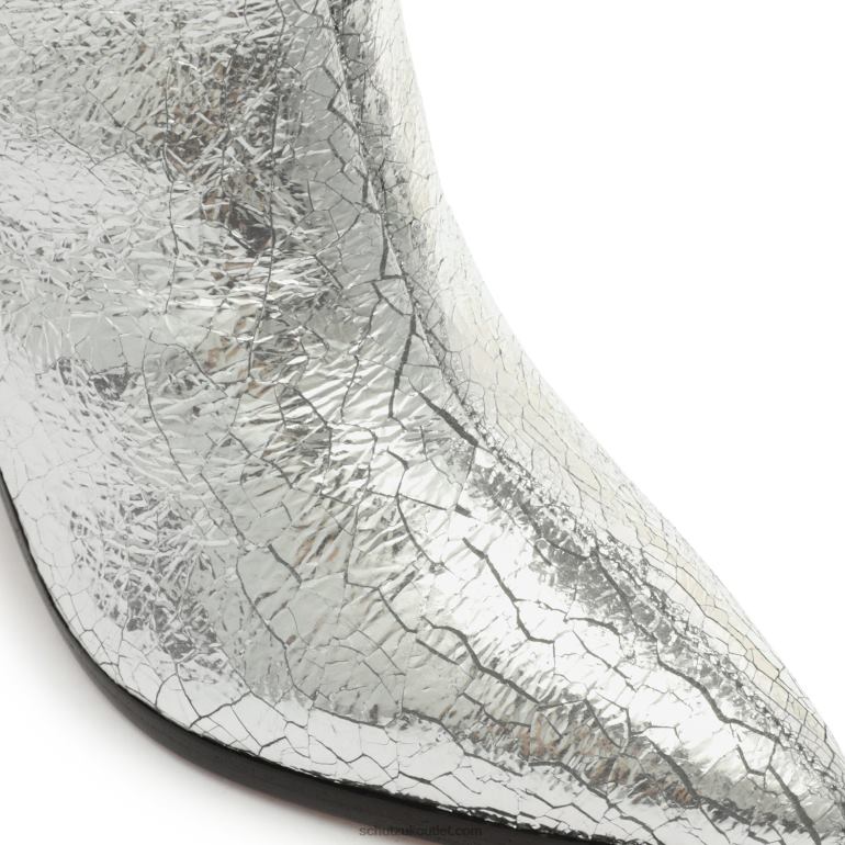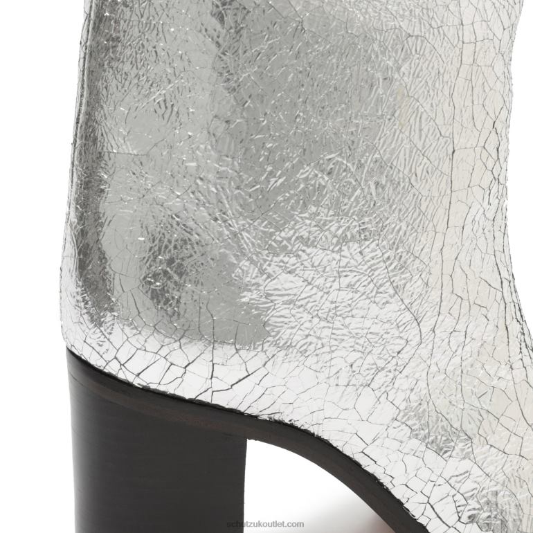 UK Schutz Maryana Block Crackled Leather Boot Silver 806T8790