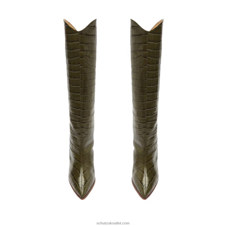 Urban chic with an equestrian spirit, the Maryana Block Boot is a knee-high silhouette crafted from croc-effect leather with a chunky stacked heel. This versatile slip-on style features a flattering almond-shaped toe and complements daytime and evening outfits with a chic sensibility. The Schutz woman will wear hers with a flowy midi dress or a pleated skirt.