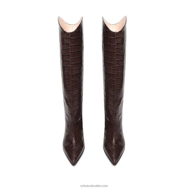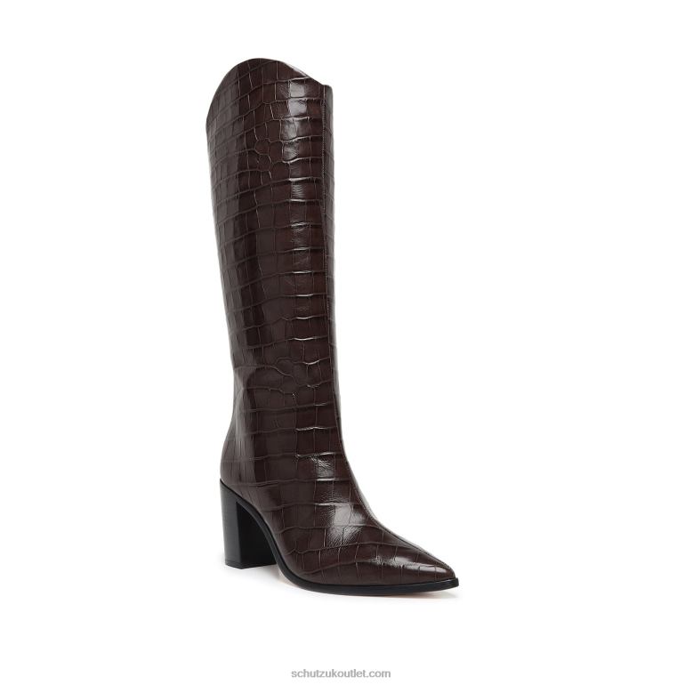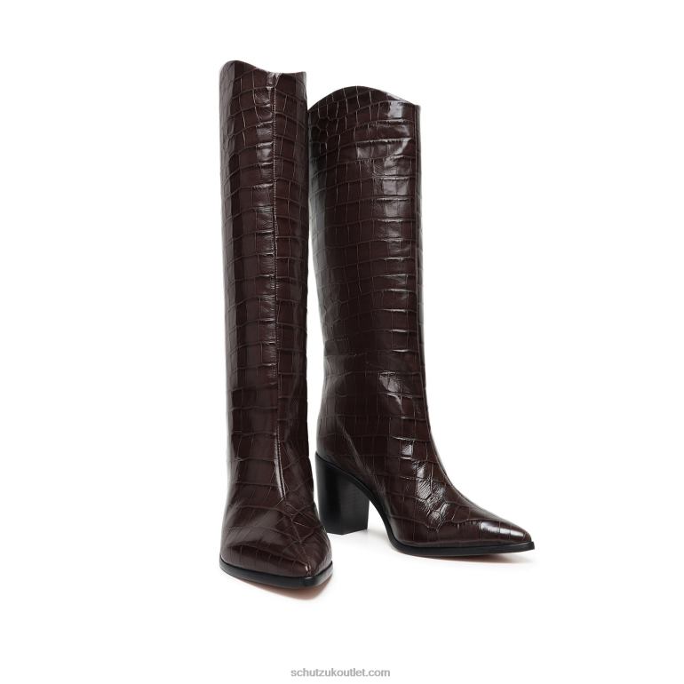 Urban chic with an equestrian spirit, the Maryana Block Boot is a knee-high silhouette crafted from croc-effect leather with a chunky stacked heel. This versatile slip-on style features a flattering almond-shaped toe and complements daytime and evening outfits with a chic sensibility. The Schutz woman will wear hers with a flowy midi dress or a pleated skirt.