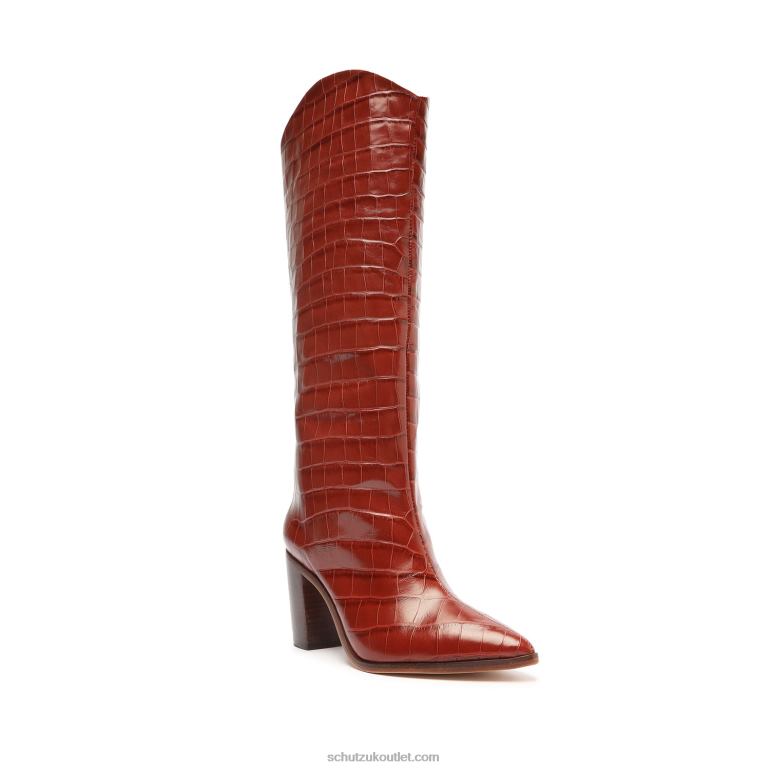 UK Schutz Maryana Block Leather Boot Red Brown 806T8741