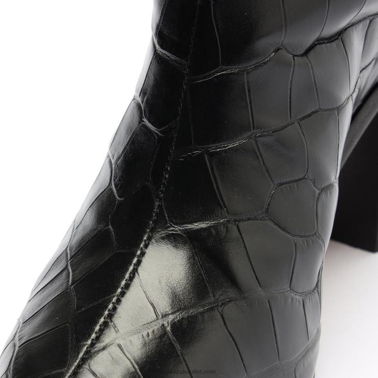 Materials: Crocodile Embossed Leather | Cow leather lining | Jelly outsoleUpper format: Plain upperUpper Detail: Embellished upperRubber patch at the heel.Heel Type: Mid heelHeel Style: BlockClosure Type: Slip-onToe Style: Round toeCounter Type: ClosedShaft Circumference: 14.5in | 370mmShaft Height: 13.6in | 340mmHeel Height: 3.3in | 85mm