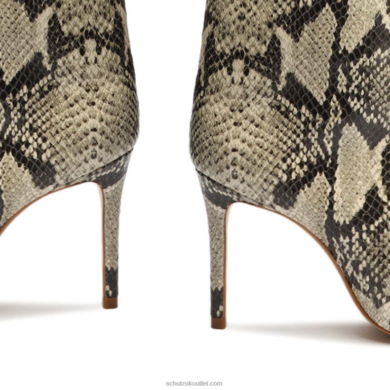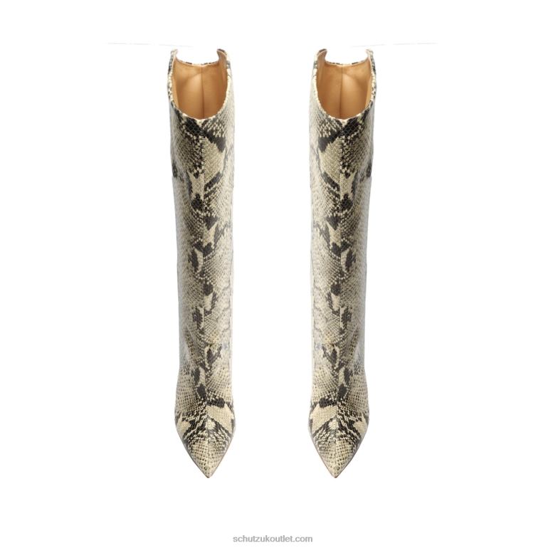 Materials: Snake-embossed Leather | Cow leather lining | Cow leather outsoleUpper format: Knee HighUpper Detail: Embellished upperRubber patch at the heel.Heel Type: High HeelHeel Style: StilettoClosure Type: Zip closureToe Style: Pointed toeCounter Type: ClosedShaft Circumference: 14.5in | 370mmShaft Height: 13in | 330mmHeel Height: 3.5in | 89mm