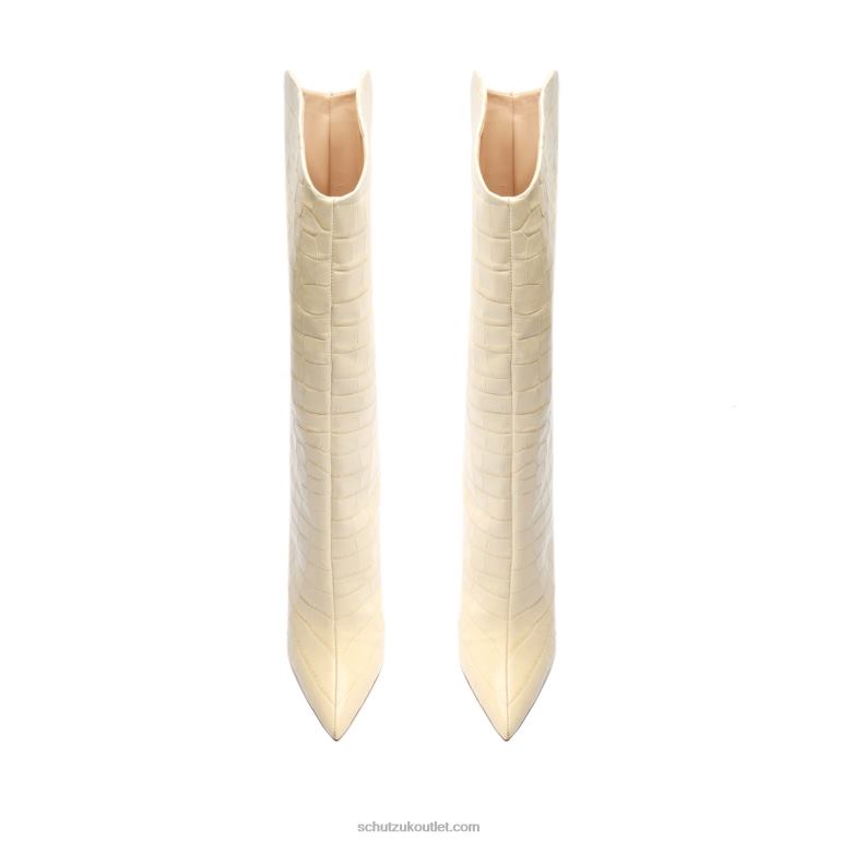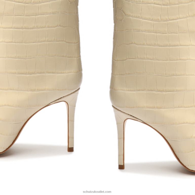 Materials: Crocodile-Embossed Leather | Cow leather lining | Cow leather outsoleUpper Format: Knee HighUpper Detail: Plan upperRubber patch at the heel.Heel Type: High HeelHeel Style: StilettoClosure Type: Zip closureToe Style: Pointed toeCounter Type: ClosedShaft Circumference: 14.5in | 370mmShaft Height: 13in | 330mmHeel Height: 3.5in | 89mm