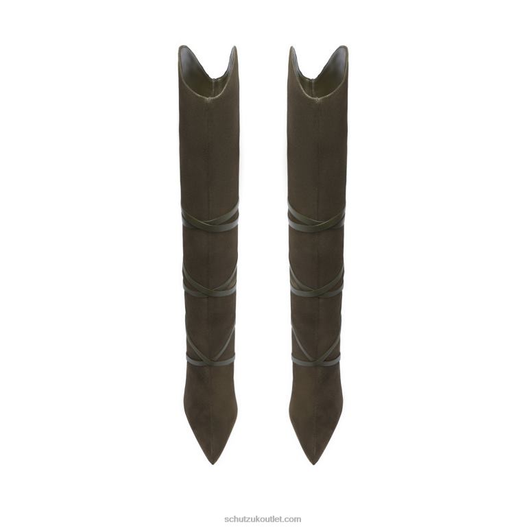 UK Schutz Maryana Lace Cow Suede Boot Military Green 806T8816
