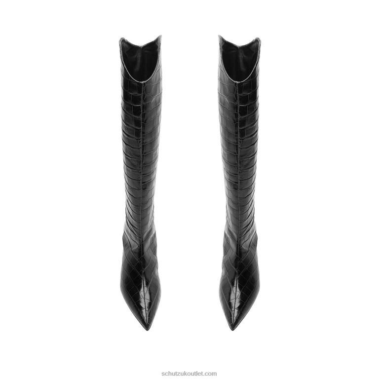 Materials: Crocodile Embossed Leather | Cow leather lining | Cow leather outsoleUpper format: Plain upperUpper Detail: Plan upperHeel Type: Mid heelHeel Style: StilettoToe Style: Pointed toeCounter Type: ClosedShaft Circumference: 14.5in | 370mmShaft Height: 15.36in | 384mmHeel Height: 2.00in | 50mm