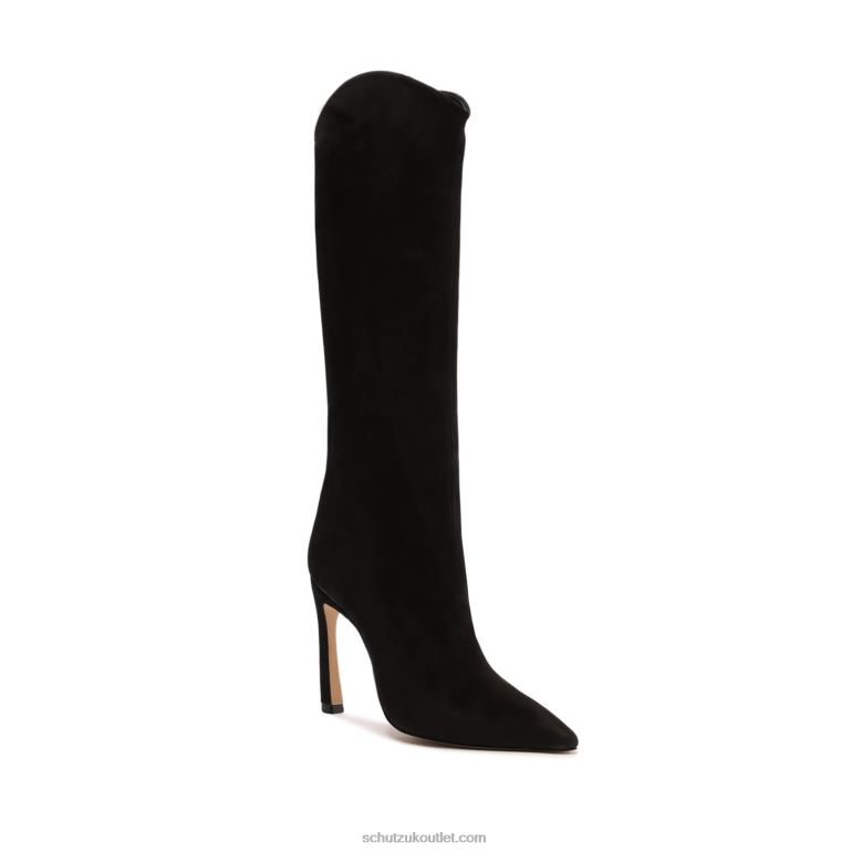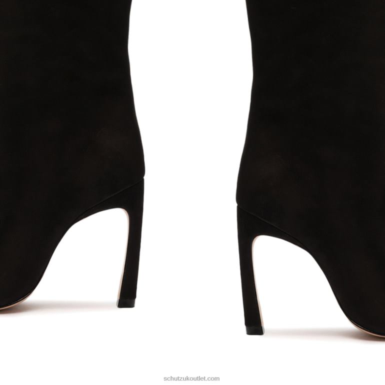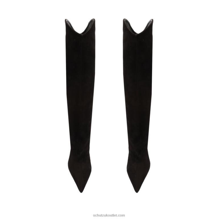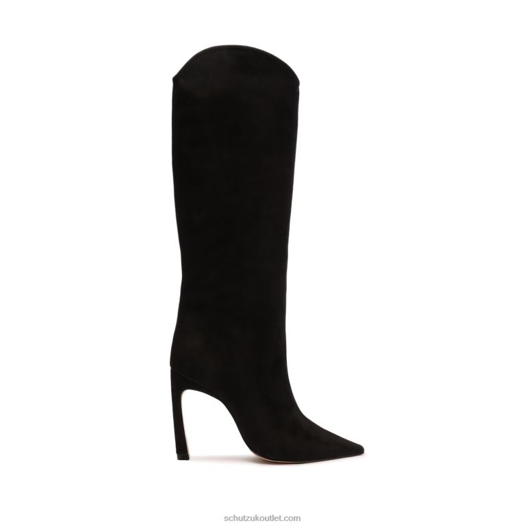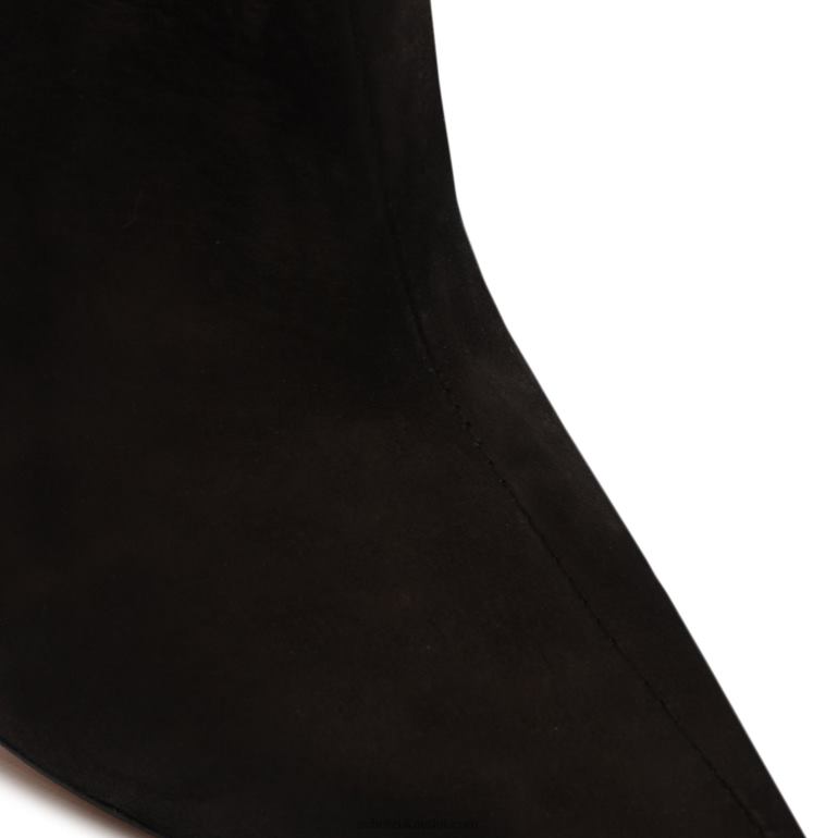 Materials: Nubuck | Cow leather lining | Cow leather outsoleUpper format: Plain upperUpper Detail: Plain upperHeel Type: High HeelHeel Style: SculpturalClosure Type: Slip-onToe Style: Pointed toeCounter Type: ClosedShaft Circumference: 14.4in | 360mmShaft Height: 13.6in | 340mmHeel Height: 3.9in | 100mmRubber patch at the heel.