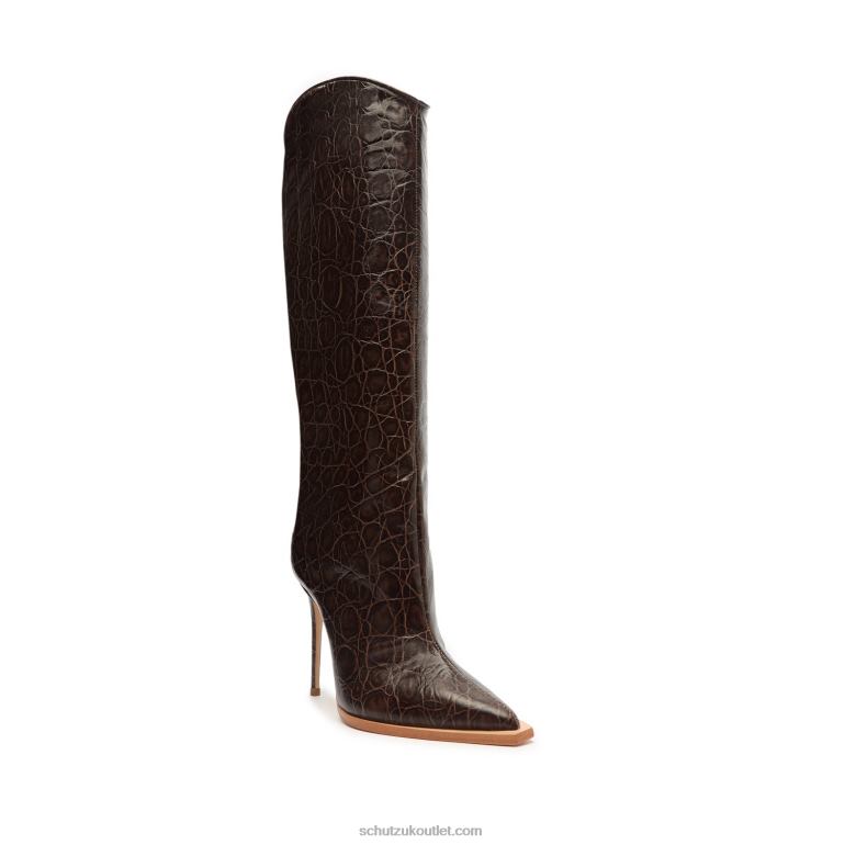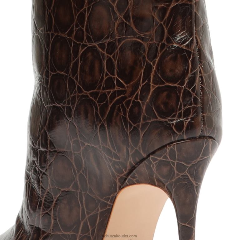 Materials: Crocodile-Embossed Leather | Cow leather lining | Cow leather outsoleUpper format: Plain upperHeel Type: High HeelHeel Style: StilettoClosure Type: Slip-onToe Style: Pointed toeCounter Type: ClosedHeel Height: 4.1in | 106mmShaft Circumference: 14.5in | 370mmRubber patch at the heel.