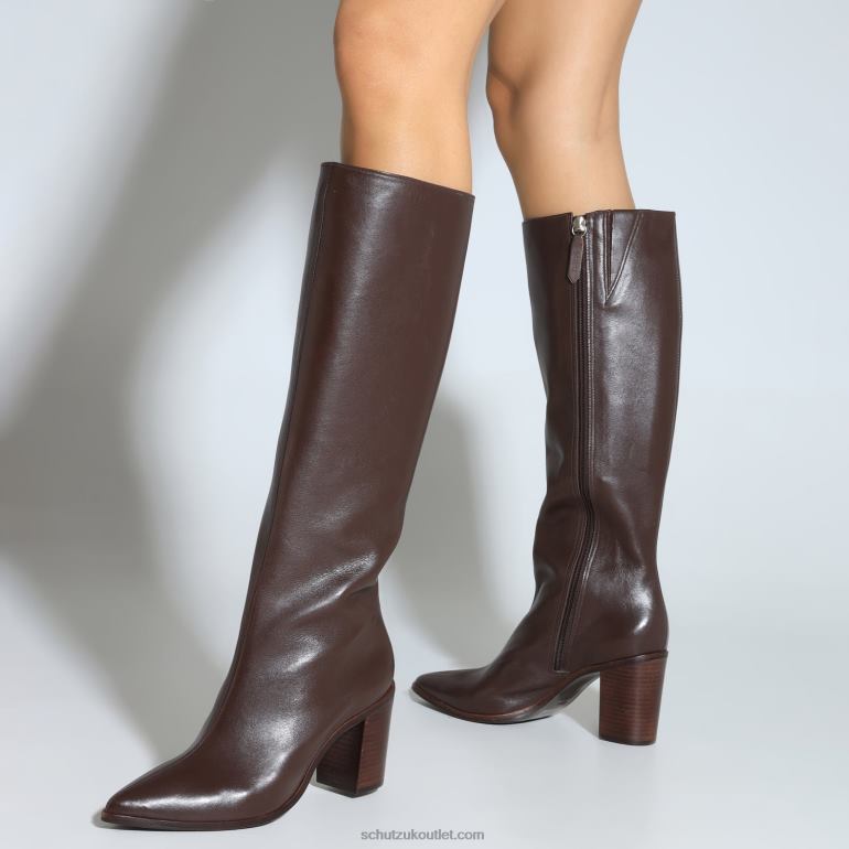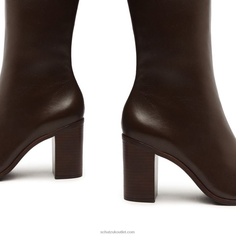 UK Schutz Mikki Up Block Leather Boot Dark Chocolate 806T8735