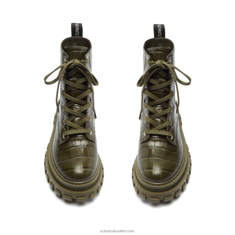 Materials: Crocodile Embossed Leather | TR lining | Tractor outsoleUpper format: Lace-upRubber patch at the heel.Heel Type: Low heelHeel Style: TractorClosure Type: Lace-upToe Style: Round toeCounter Type: ClosedShaft Circumference: 9.24in | 231mmShaft Height: 5.08in | 127mmPlatform Height: 35mmHeel Height: 2.5in | 65mm