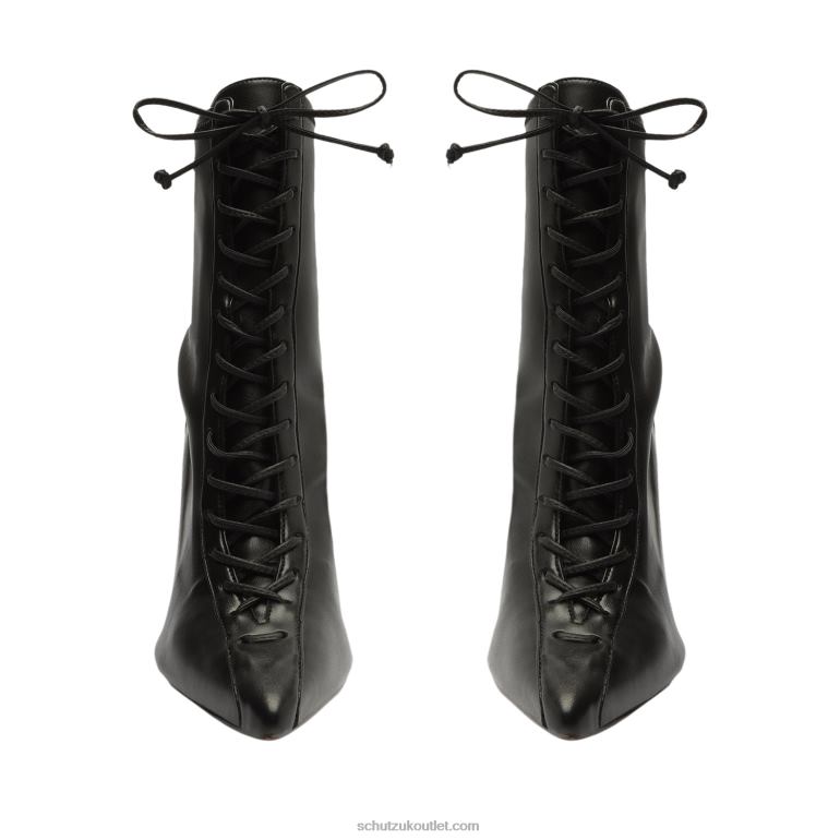 Materials: Stretch Synthetic | Cow leather lining | Cow leather outsoleUpper format: Lace-upRubber patch at the heel.Heel Type: High HeelHeel Style: StilettoClosure Type: Lace-upToe Style: Pointed toeCounter Type: ClosedShaft Circumference: 8.92in | 223mmShaft Height: 5.76in | 144mmHeel Height: 4.3in | 110mm