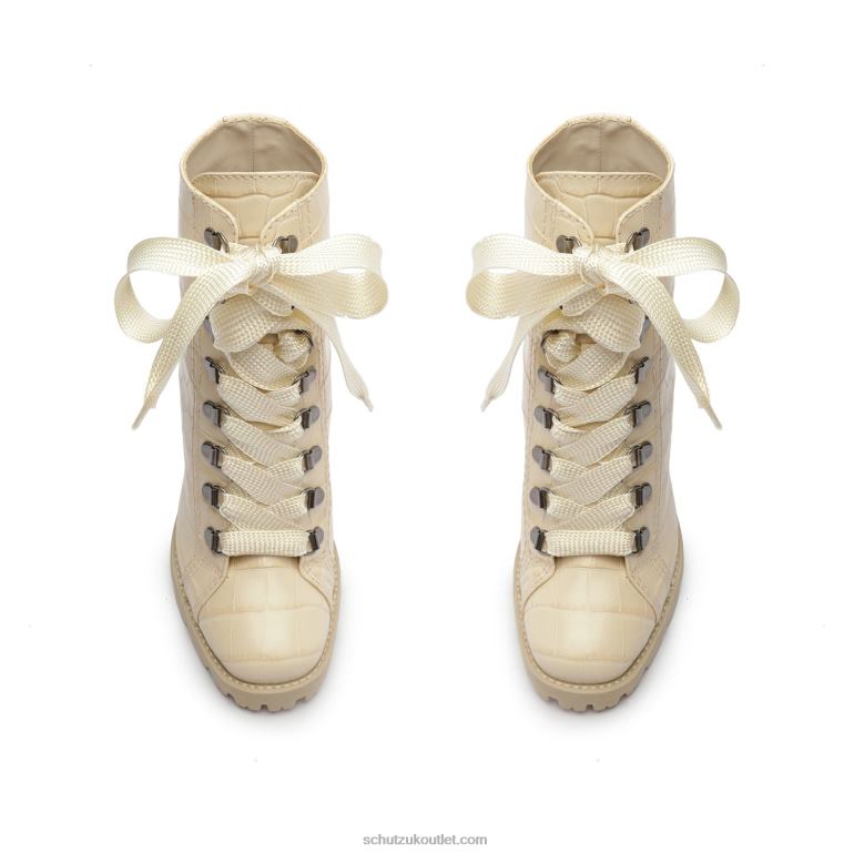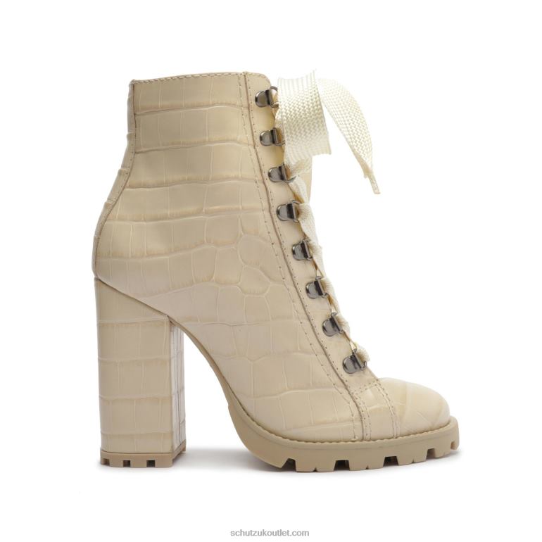 UK Schutz Zhara Crocodile-Embossed Leather Bootie Eggshell 806T8154