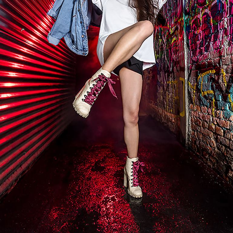 Elevate your boot game with the Zhara. This lace-up style is made from Crocodile-Embossed Leather for a glamorous take on the combat trend.