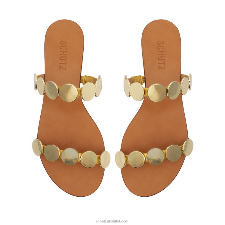 Make a statement with the Acacia Sandal, featuring a comfortable flat sole and two vintage inspired gold coin straps to compliment your warm weather ensemble.