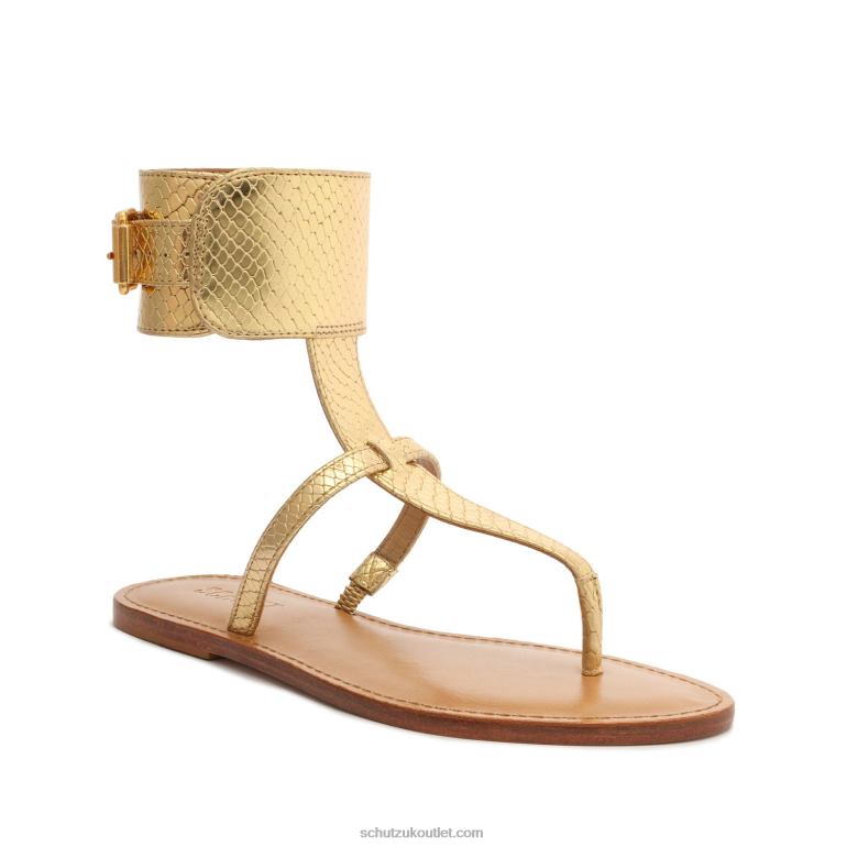 Upgrade your Spring weather ensemble with the Athena Gilded Leather Sandal. This sandal features a unique metallic upper for a chic look.