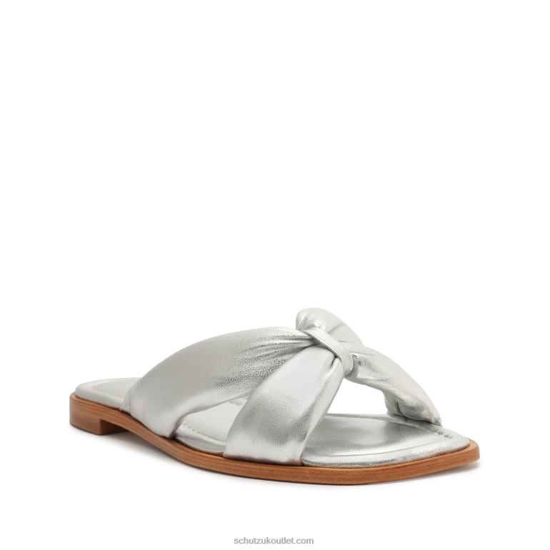 UK Schutz Fairy Metallic Leather Sandal Silver 806T8599