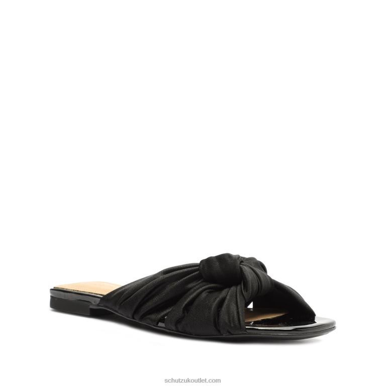The Indy Flat Sandal features a front vamp bow curated from spandex straps, providing you with comfort and style all at once.