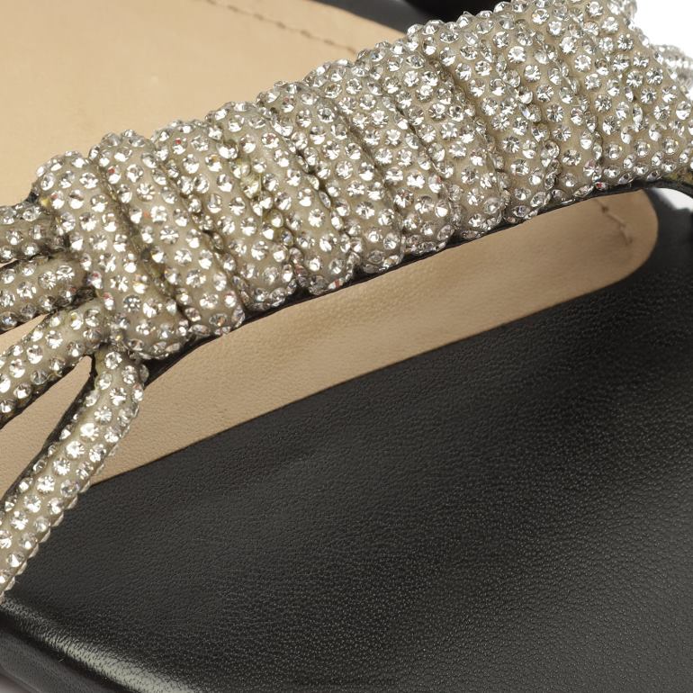 Time to shine. The Jewell Sandal is evening-ready thanks to the charming flat heel and gleaming finish.