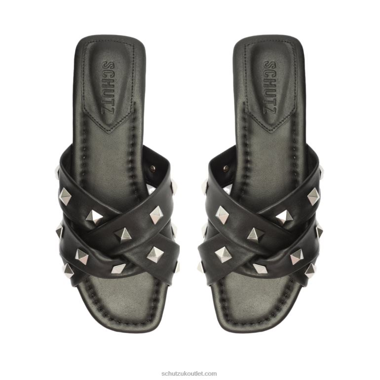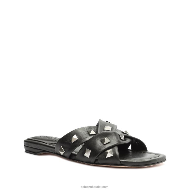 Step into sophistication with the Roxanne Nappa Leather Sandal. Crafted with a sleek, flat silhouette in Nappa leather, this sandal is adorned with a subtle row of spikes that add just a hint of edge. Elevate any ensemble with its timeless and elegant design.