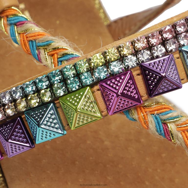 Stand out from the crowd this season when wearing the Summer Atanado Sandals. The straps are covered in shiny gems and feature an ankle tie.