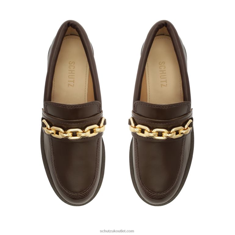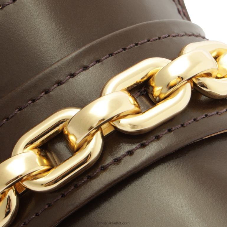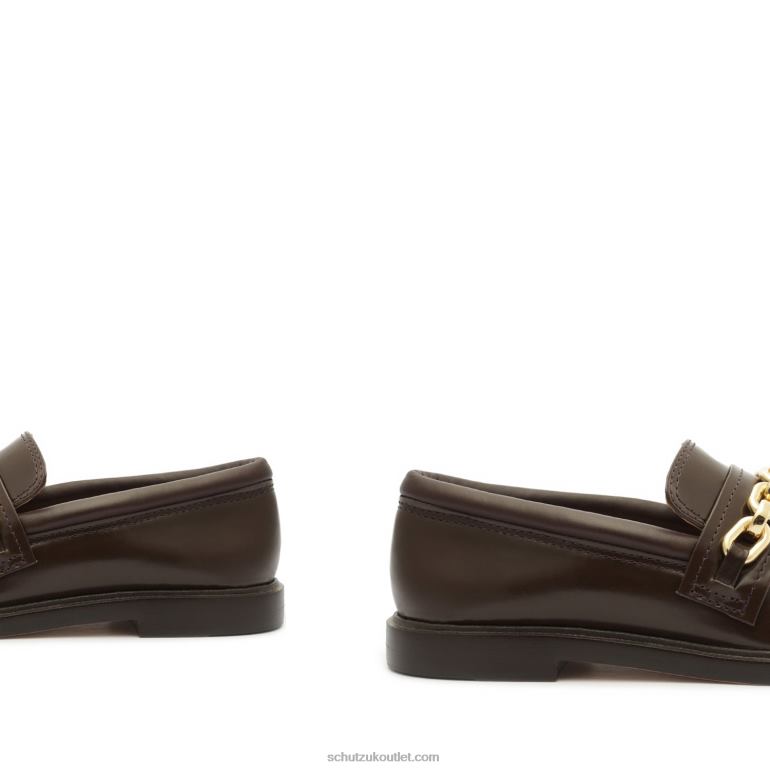 This is our take on the iconic loafer, featuring a beautiful brass chain on its front that pairs perfectly with dresses or chic menswear-inspired garments.