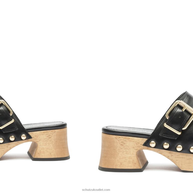 Give your sweatsuit some style with a pair of Evers, featuring a mid heel and round toe surrounded by studs with an adjustable buckle.