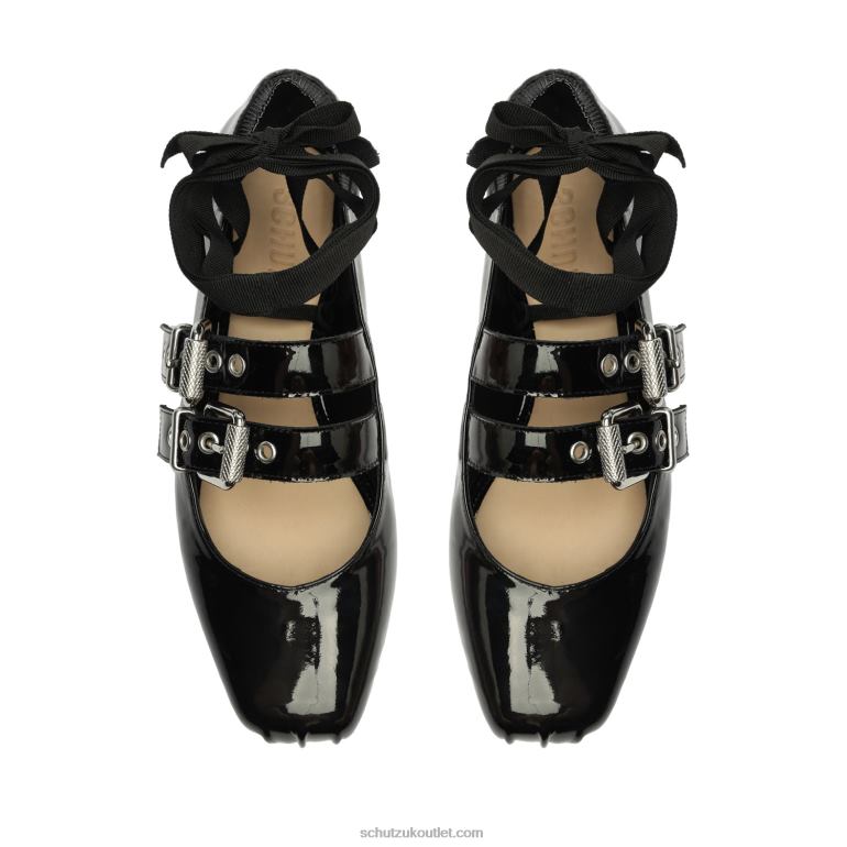 This stylish Raika Patent Leather Flat is the perfect addition to your wardrobe. Crafted with fine patent leather in a classic black hue, it features a square toe with buckles and a ballerina flat silhouette. Its sophisticated design will have you stand out from anyone in the crowd.