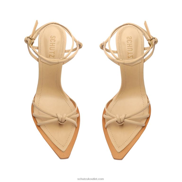 The Abby Sandal is a pointed-toe silhouette crafted in leather with an ankle-wrap fastening and knotted accent at the upper.