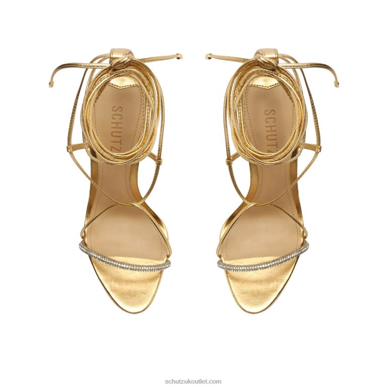 Materials: Rhinestones & Metallic Nappa | Cow leather lining | Cow leather outsoleUpper format: MultistrapsUpper Detail: Embellished upperHeel Type: High HeelHeel Style: StilettoClosure Type: Lace-upToe Style: Round toeCounter Type: OpenHeel Height: 4.5in | 116mmRubber patch at the heel.