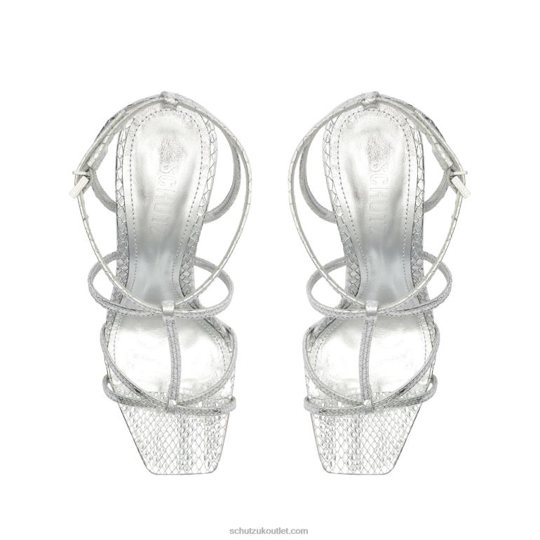 Materials: Snake-Embossed Leather | Cow leather lining | Cow leather outsoleHeel Type: High HeelHeel Style: StilettoClosure Type: Buckled closureToe Style: Square toeCounter Type: OpenHeel Height: 3.93in | 100mmRubber patch at the heel.