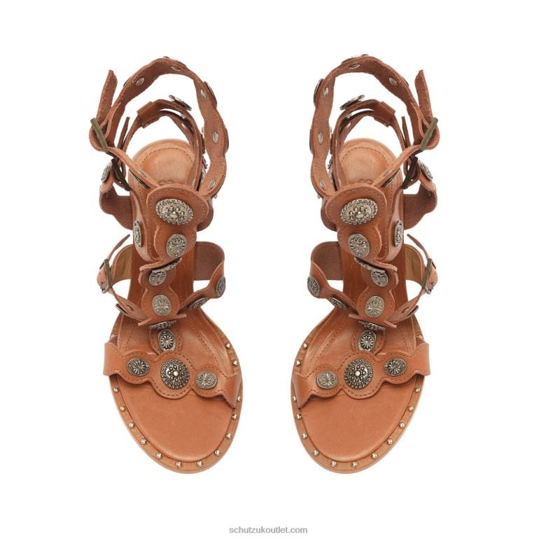 The Aletta Sandal in leather is a block-heeled silhouette featuring detailed straps.