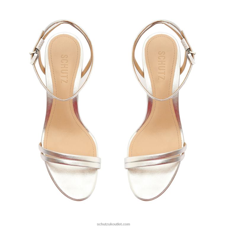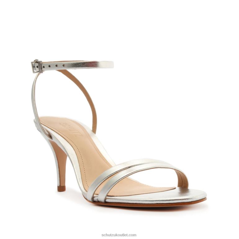 UK Schutz Altina Mid Metallic Leather Sandal Silver 806T8448