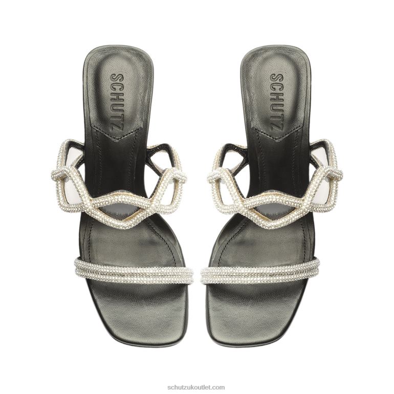 UK Schutz Arabella Glam Vinyl Sandal Crystal Black 806T87