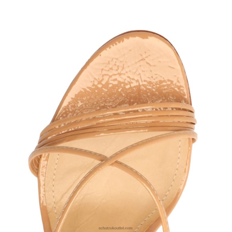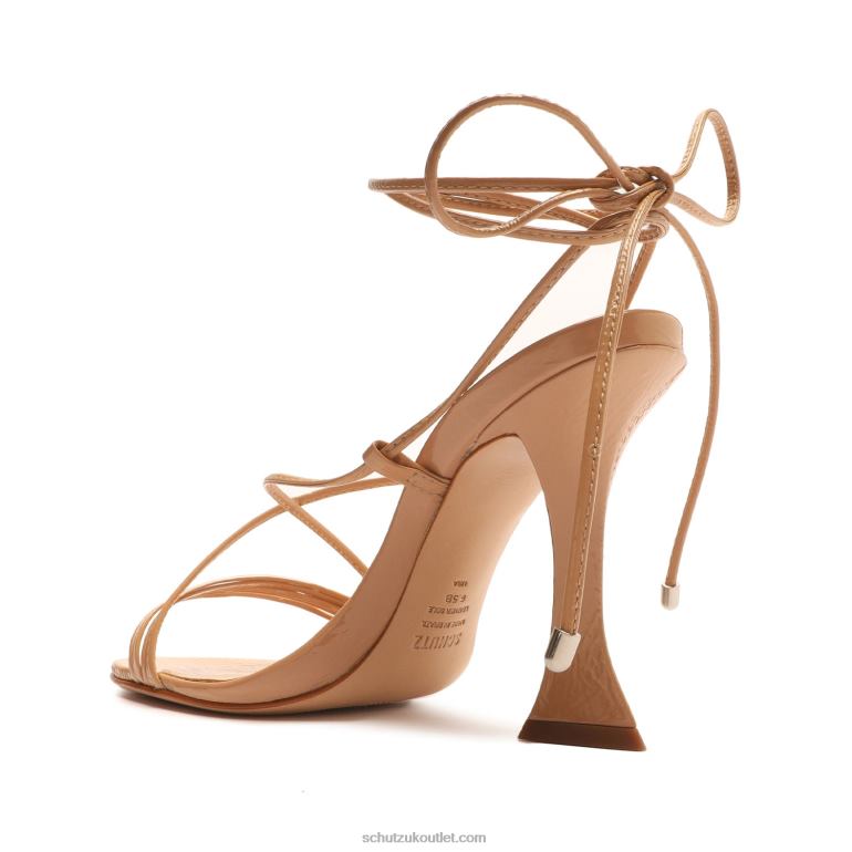 Upper material: Patent LeatherUpper format: MultistrapsOutsole Type: Cow leatherLining Details: Material Cow leather | Color BeigeHeel Type: High HeelHeel Style: SculpturalToe Style: Round toeCounter Type: OpenClosure Type: Lace-upHeel Height: 3.9in | 100mm