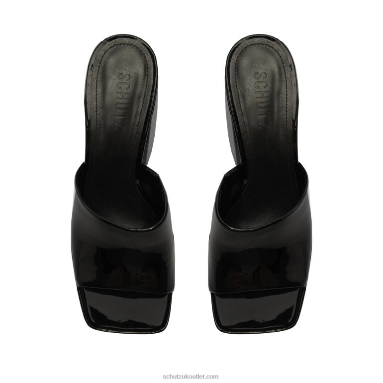 Materials: Patent Synthetic | Cow leather lining | Cow leather outsoleUpper format: Regular shaped upperHeel Type: High HeelHeel Style: BlockClosure Type: Slip-onToe Style: Square toeCounter Type: Slip-onPlatform Height: 53mmHeel Height: 5.2in | 133mmRubber patch at the heel.